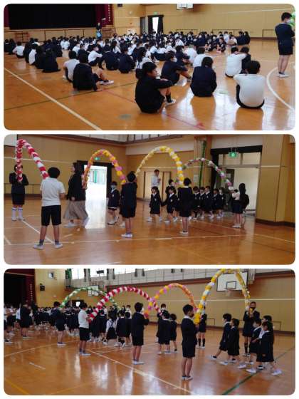 今日は、2〜6年生と1年生との対面式がありました。