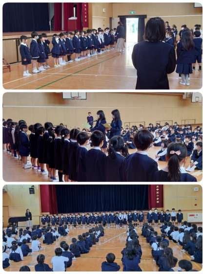 対面式では、6年生の代表が、歓迎のことばをとても上手にお話ししてくれました。中浜小学校の上級生は、みんなとても優しいので安心して学校生活をスタートすることができると思います。最後に1年生が声を合わせて、「お兄さんお姉さん、よろしくお願いします。」とごあいさつをしました。とってもかわいくてみんなにこにこの笑顔でした。
