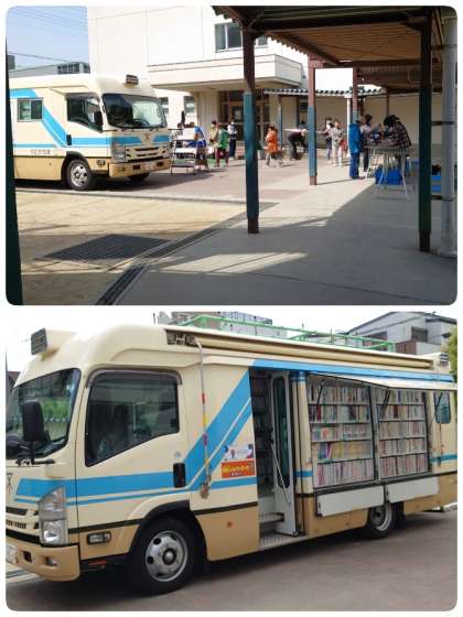 今日は、10時から中浜小学校の南門に近くで、自動車文庫が開かれていました。毎月1回、中央図書館から来てくれるそうです。地域のみなさんもたくさん来られて本の返却と貸し出しをしておられました。各区にある図書館から離れている場所に、地域の方が利用しやすいように自動車文庫が来てくれるそうです。来月は、5月16日(火)です。