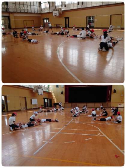 4年生は講堂で、ペアになって仲良く体ほぐしの運動をしていました。ゆったり体をほぐして、心も体もリラックスです。