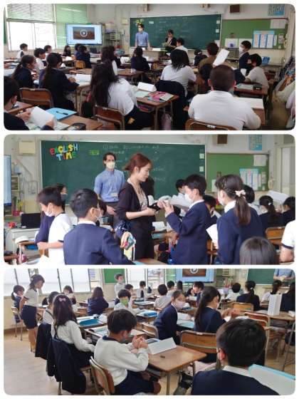 今日は、C-NETの先生が来てくださる日です。3年生以上の子ども達が、外国語指導担当の先生とネイティブの先生と一緒に外国語活動・外国語の学習をしました。4年生は、自己紹介ゲームを楽しんでいました。自分で書いた英語の名札を持って、どんどんお友達を探して自己紹介をしていきました。すごく楽しそうに活動していました。