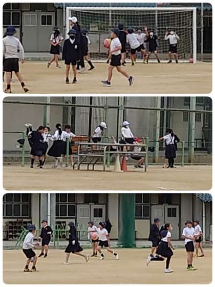 休み時間になると、運動場から子ども達の楽しそうな声が聞こえてきます。特に15分休みは、たくさんの子ども達が遊んでいるので一層にぎやかです。担任の先生と一緒に遊んでいる学級もあれば、今はまっている運動に夢中の子ども達もいます。のびのびと遊んでいる子ども達の楽しそうな声と笑顔が最高です。