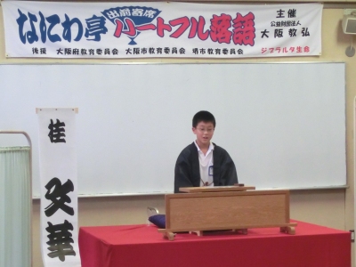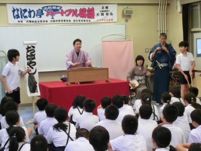 9月8日(火)午後、5・6年生は多目的室で、大阪教育公務員弘済会主催の出前寄席『なにわ亭ハートフル落語』を鑑賞しました。