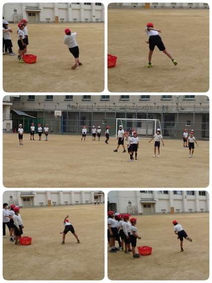体力テストに向けて、ソフトボール投げの練習をしていました。1人2回ずつ投げていました。ボールを拾う係も交代でしました。またしっかり練習をして、遠くまで投げることができるようにがんばります。