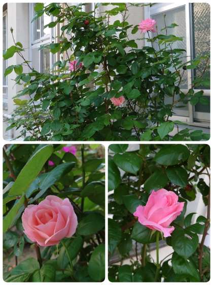 先日ホームページでお知らせしたバラのつぼみが開き、今は3輪きれいに咲いています。よく見ると1輪ずつ微妙に色が違います。お花がいっぱい咲いている中浜小学校。子ども達にもとてもいい環境だと思います。