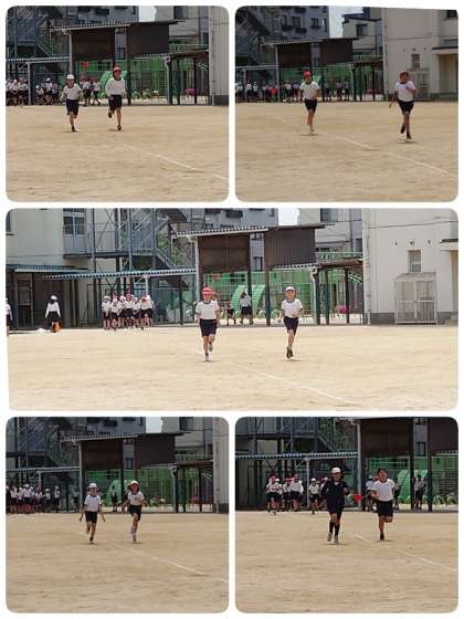 次の時間は6年生が50m走をしていました。最初は軽く流して体を慣らし、2回目は思い切り走りました。昨年度よりタイムがすごく速くなったようです。担任の先生も喜んでいました。6年生が一生けんめい走る姿はステキでしたが、走っている子を応援する様子がさらにステキでした。いい感じです。!(^^)!