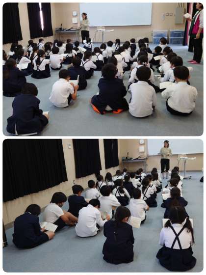 1・2年生は、5月9日(火)に鶴見緑地公園へ遠足に行く予定です。今日は、1・2年生が多目的室に集まって、事前のお話を聞きました。