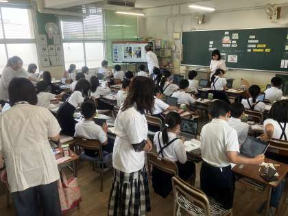 本日2時間目、フッ化物洗口の時間でした。子ども達に嚙むことの大切さについてのお話があり、咀嚼チェックガムを使って噛む力を視覚的に確認する活動をしました。