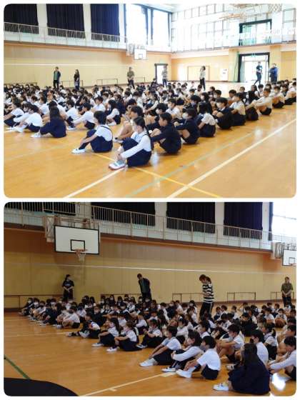 次に、先週で全学年の遠足が終わりましたが、どの学年も電車の乗り降りや車中でのマナーなど、とてもよかったこと、これからある校外学習の時も場に応じた行動ができるようにがんばってほしいことをお話ししました。