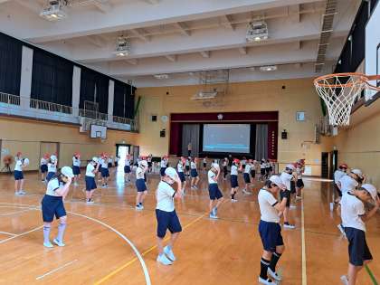今年は4年ぶりに団体演技を披露します。6年生にとっては小学校生活最後の運動会となるので、有終の美を飾るため、授業や休み時間でも一生懸命に練習しています。披露する日が今から楽しみです。