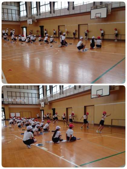 運動会が終わり、今日から体力テストが始まりました。6年生は、反復横跳びを実施。みんな一生けんめい取り組んでいました。