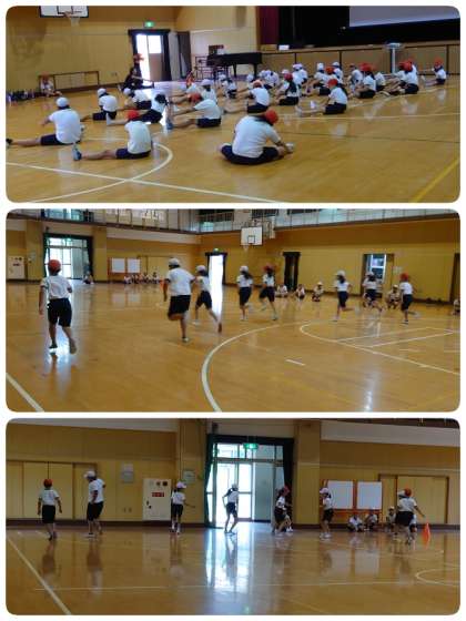 4年生はシャトルランをしていました。今日は涼しくてシャトルラン日和です。音楽に合わせて、何回も走ります。4年生の子ども達は、全力を出し切ってがんばっていました。最高記録は81回だったそうです。すごい持久力ですね。