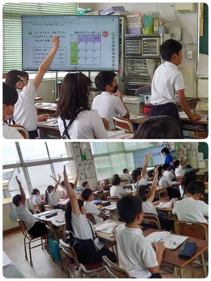 算数の時間に「表の整理の仕方を考えよう」の学習をしていました。問題を読んで、わかっている数を表に書き込んでいくと、今まで?だった数がどんどん分かっていきます。謎が解けるみたいに次々と数が分かっていくので、子ども達はすごく楽しそうに学習に取り組んでいました。