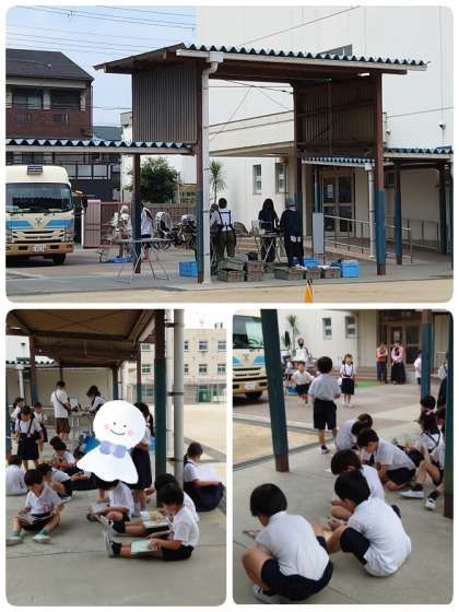 今日は、月に1回の自動車文庫の日。1年生の子ども達が1冊ずつ本を借りました。みんなうれしそうに借りた本を見せてくれました。また来月も借りるのかな?