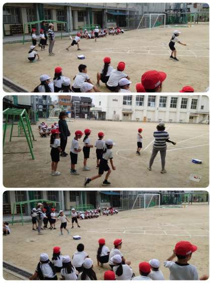 学年が上がるごとに記録もぐんぐんあがっていきます。日頃から運動やスポーツをよくしている子ども達の記録には圧倒されました。最高記録は、50mを超えていました。すごい!!(*^-^*)