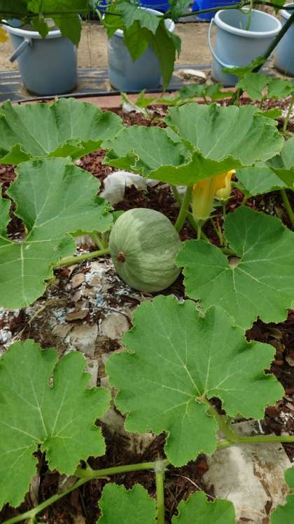 学習園のカボチャは順調に大きくなってきました。先日ホームページでお知らせした時より3倍以上の大きさです。それ以外にも3つ結実しています。おおきくなぁれ!!