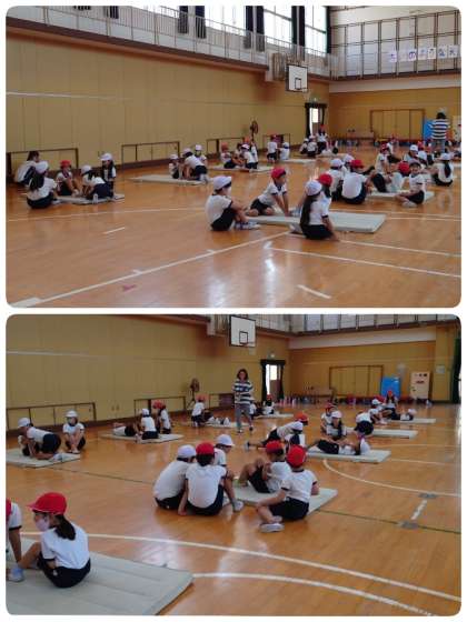 講堂で1・2年が体力テストの「上体起こし」と「反復横とび」をしていました。5年生が測定を手伝ってくれていました。高学年が低学年の体力テストを手伝ってくれると大助かりです。とてもスムーズに測定することができました。5年生のみんな、ありがとう!!