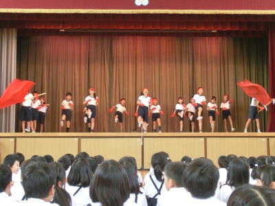 運動会に向けて「応援団の練習 」≪児童朝会≫