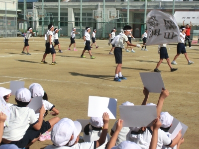 9月29日(火)1限、3回目の「運動会全体練習」を行いました。今日は運動場で初めて、「応援合戦」の練習を行いました。