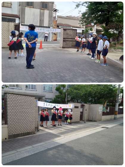 6月も最終週になりました。運動委員会のあいさつ運動も最後です。今日は、途中から自主的に2人の子どもが加わりました。あいさつを呼びかけている子ども達も楽しんで活動しています。朝から気持ちよくスタートできました。