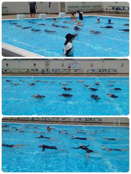 今日の4時間目は、5・6年生のプール開きでした。水慣れをした後、けのび・ばた足・クロールなどで、何回も泳ぎました。気温が高かったので、すごく気持ちよさそうに泳いでいました。5・6年生にもなると、慣れたもので、水泳学習がとてもスムーズに進んでいきます。プールでの約束も自分達で考えて行動できていました。水泳学習の期間は短いですが、どのくらい泳力が伸びるのか楽しみです。