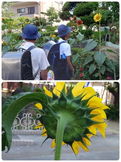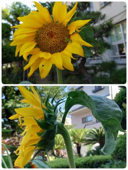 ヒマワリを見ているときに、小さい生き物を発見。じっと動かないので「葉っぱかな?」と思いました。本当にかくれんぼ上手です。