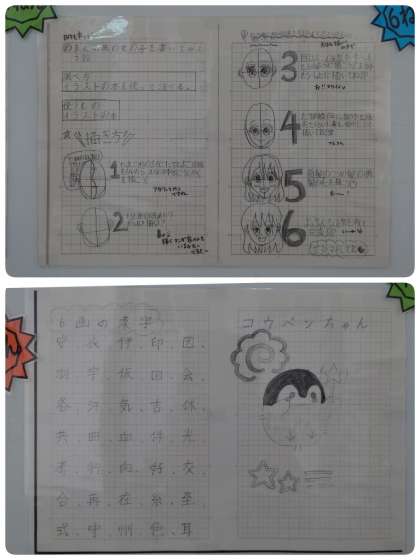 とても分かりやすくまとめてあったり、漢字や英語の学習をしてあったり、一人一人が工夫して取り組んでいるのがよく分かります。すごいです。