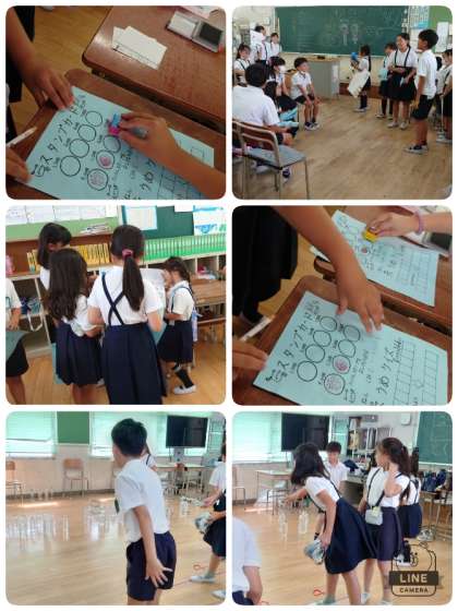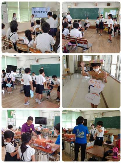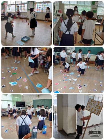 たてわり班の中のきょうだい学年でペアを作ってお店を回りました。上の学年の子が下の学年の子が楽しめるように優しく声をかけている姿が印象に残りました。