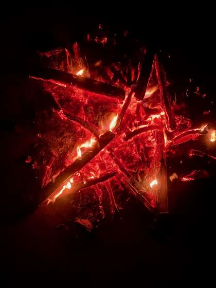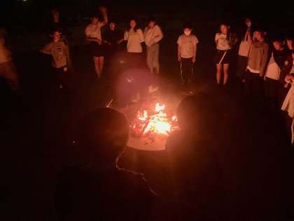炎を崩して、星の形になった炎をみんなで見ました。天候は、雲が出ていて星は見えません。