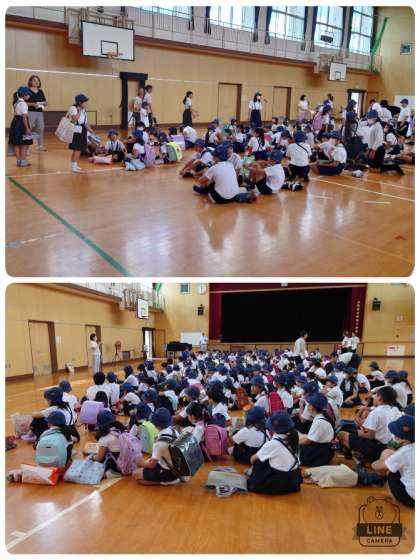 今日の下校は「地区別集団下校」でした。緊急時、このような集団下校をすることがあります。講堂に登校班ごとに集まり、担当の先生と一緒に下校しました。6年生がとってもしっかりしているので、どの班も安心して登下校できますね。2学期もよろしくお願いします。