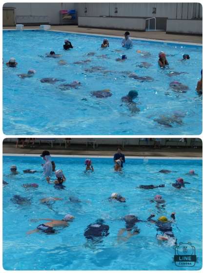 久しぶりの水泳学習です。なんだか1学期に比べてすっかり水に慣れている様子の子ども達。水のかけ合いをしたり、1・2・3で潜ったり、だるまさんや大の字浮きをしたりして水遊びを楽しんでいました。顔をつけるのも潜るのもヘッチャラの子ども達が増えていました。大きな成長を感じます。