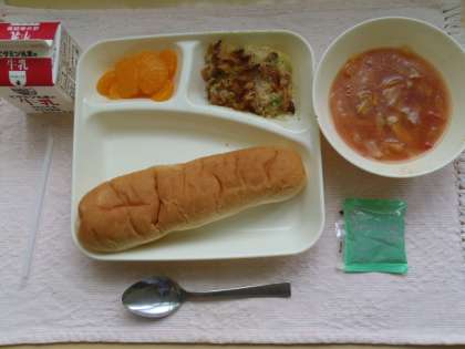 豆乳マカロニグラタンのほんのりカレー風味と、トマトスープの優しい酸味で食欲が増し、今日もしっかり食べました。