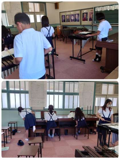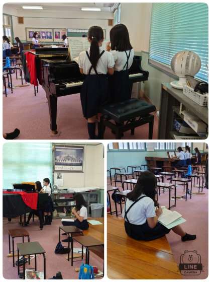 音楽の時間にパートに分かれて合奏の練習をしていました。楽譜を見ると結構難しそうです。今はまだみんなで合わせるところまで練習は進んでいませんが、これからどんどん上達していくと思っています。