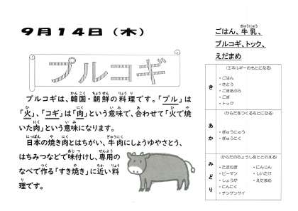 今日は韓国・朝鮮料理の献立です。