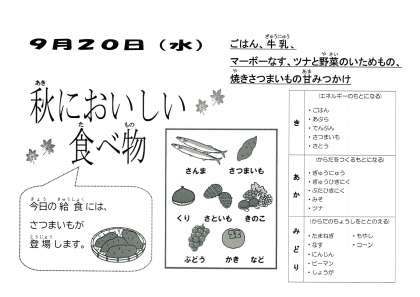 焼きさつまいもの甘みつかけは、さつまいもを焼いているので、油であげて作る大学いもとはちょっと違う、やさしい味の献立です。