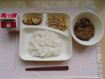 マーボーなす、ツナと野菜のいためものでごはんが進み、今日もしっかり食べました。