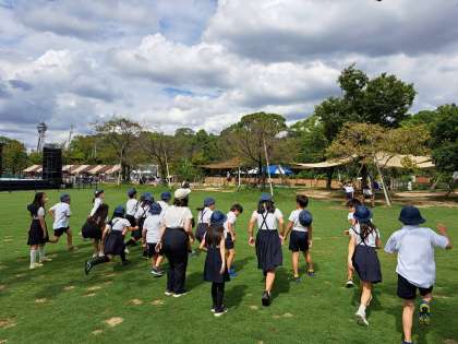 お弁当の後、みんなで遊びました。芝生がとっても気持ちいいです。