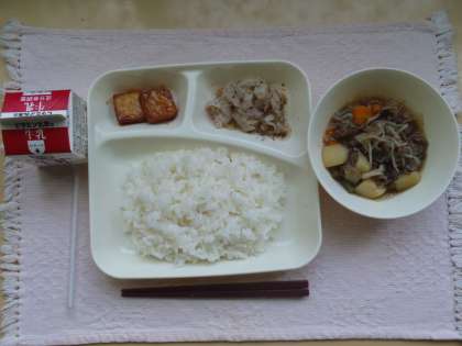 肉じゃがは、牛肉がたくさん入っていて、甘辛い味付けで、ごはんがとても進みます。