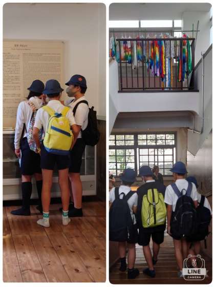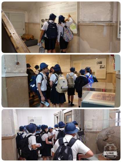 子ども達は、資料館の展示物を熱心に見ています。真剣な表情をしています。