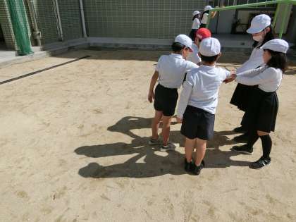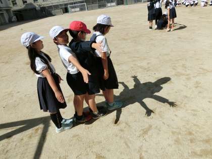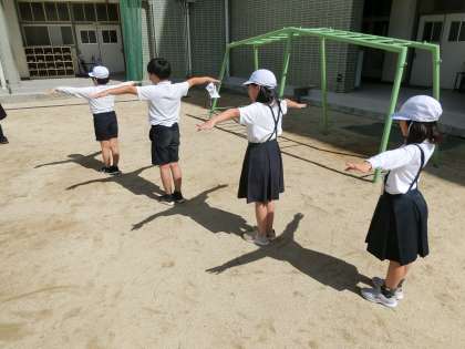 3年生の理科の授業では、「かげと太陽」の学習が始まりました。今日は、天気がよかったので、運動場で「かげつなぎ」をすることができました。どのチームも協力して「かげつなぎ」をすることができていました。その後、「かげふみ」をしました。楽しく学習できました。