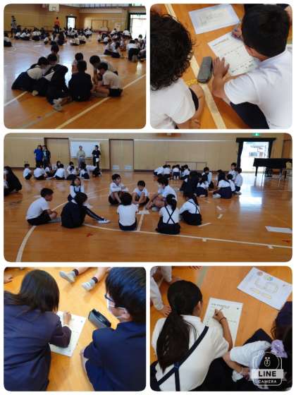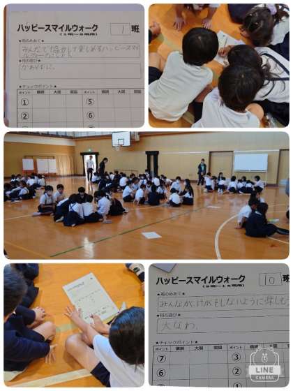今日の児童集会は、来週の17日(火)のハッピースマイルウォーク(全校遠足)の活動について、なかよし班で話合いをしました。オリエンテーリングのめあてと、なかよし班のみんなで何をして遊ぶかについて決めました。6年生が班のみんなの希望を聞き、うまく調整してくれていました。みんなで協力して楽しいオリエンテーリングにしてほしいと思います。