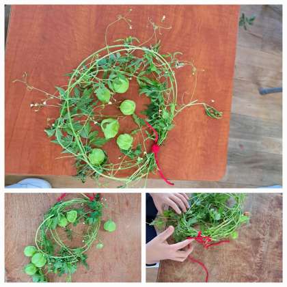 1年生は、フウセンカズラのツルを使ってリース作りをしました。