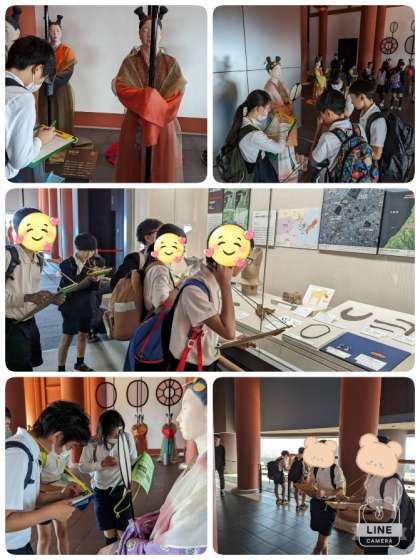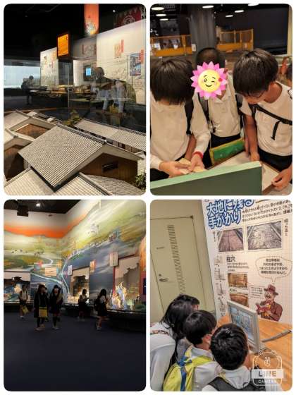 大阪歴史博物館には、古代から現代までの大阪の歴史と文化についての展示物がたくさんあります。6年生の子ども達はグループに分かれて熱心に見学していました。