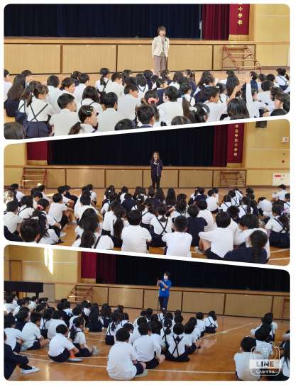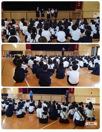 1つ目は、最近中浜小学校で新しくなったことについて、2つ目は、就学時健康診断の時に5年生が大活躍したことの紹介、3つ目は、学校の安全対策についてです。