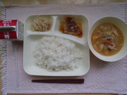 しっかりした味付けのあかうおのしょうゆだれかけ、あっさりとしたもやしのゆずの香あえと一緒に、今日もしっかり食べました。