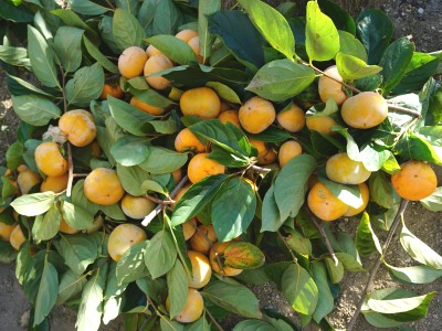 また、正門左の「きねんの庭」の「柿」を管理作業員さんと収穫しました。柿にはざっと1000もの種類があり、主流は渋柿で、甘柿はその突然変異ということです。学校の柿の木は、毎年秋には、たわわな実をつけていますが、いわゆる「渋柿」で、シブ抜きをしないと食べれません。干し柿にして食べるそうです。