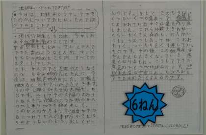 地球の誕生が誕生したのは今からおよそ46億年前。どんなふうに地球ができたのか調べたことが書いてあります。自分の興味のあることを知らべると頭にしっかり残りますね。