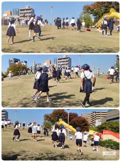 扇町公園の遊具で遊んでいます。