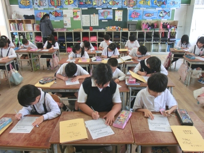 始めたころは制限時間内にできる児童は5人もいませんでしたが、今では半数以上が5分以内に終わり、なかには3分以内に終わる児童もでてきました。子どもたちも繰返し続けているので、自分自身の成長がわかり熱心に取組んでいます。