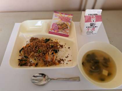 ごま油の風味がしっかりと味わえるミンチ肉とナムルがのったビビンバは、ボリューム満点で、もりもり食べることができる献立です。あっさりとしたわかめスープと一緒だと、より一層食が進みます。食欲の秋にぴったりの献立です。